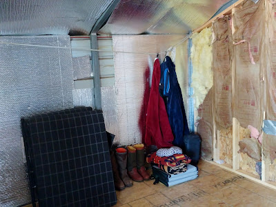 The barn is mostly empty with assorted gear going into the newly built storage shed. Step two of this on-going project is to replace the insulation, then build out the interior walls. After that, we will floor it. Then we can get a new A/C and heater combo installed.