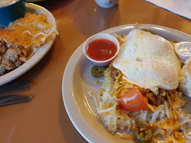 The next morning I  got up early, threw the turkey into the oven, went to Dunkin' and bought some goodies, then barracaded myself in my craft room/office until lunch time.  At which time the plumbers were done and we headed to Pok-e-Jo's for some BBQ.