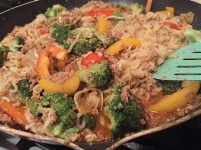 Dinners have still had lots of fresh veggies, and in the case of my stir fry, lean ground turkey. I have tried to cook things that appeal to all three of us.